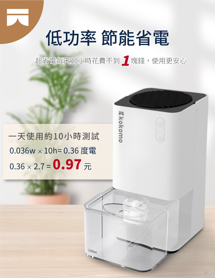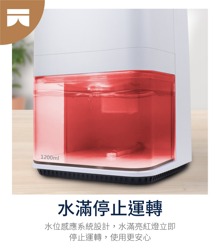 ★ 1200ml 容量水箱,滿水自動停機