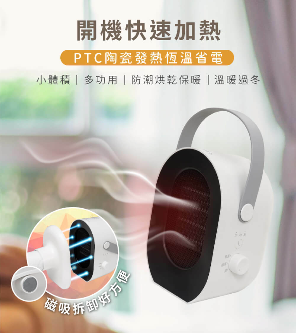 ★ PTC陶瓷快速加熱,輕巧不占空間