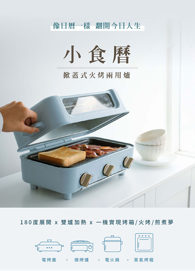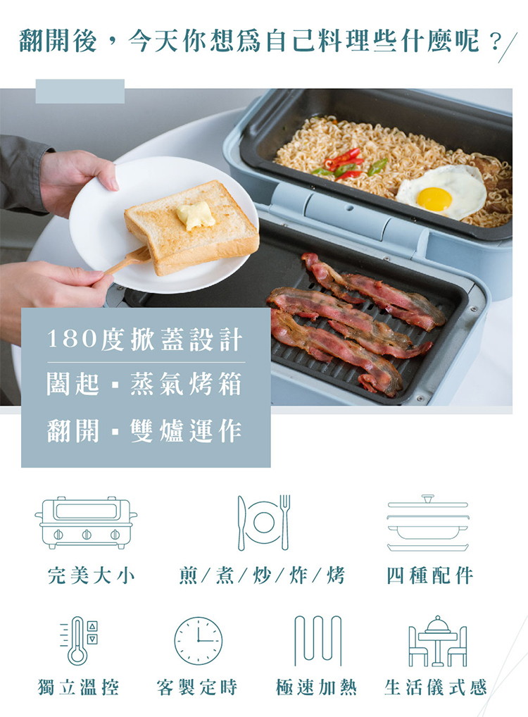 ★ 180度掀蓋式設計,雙鍋美味展開分享