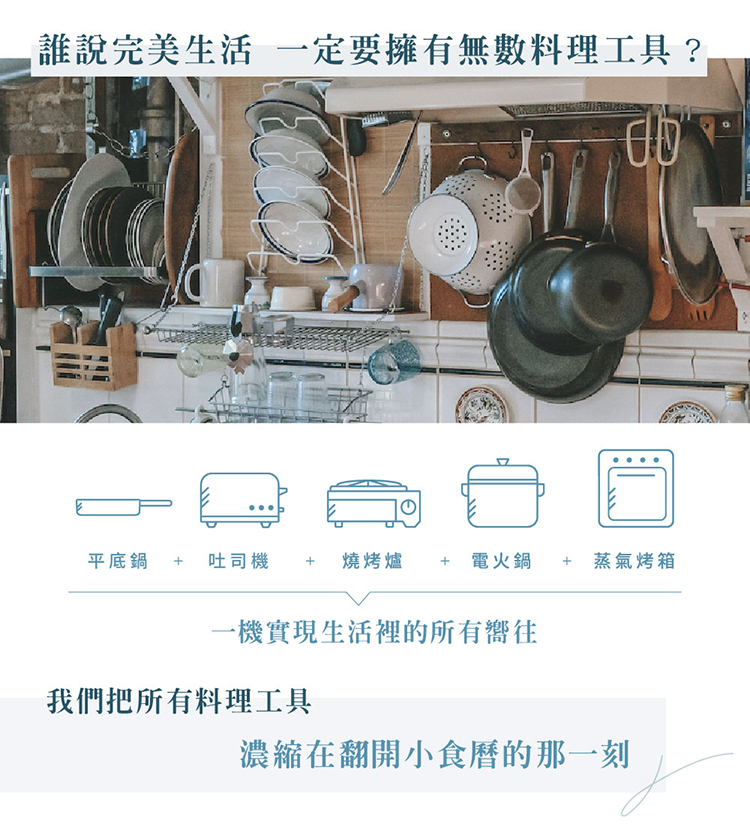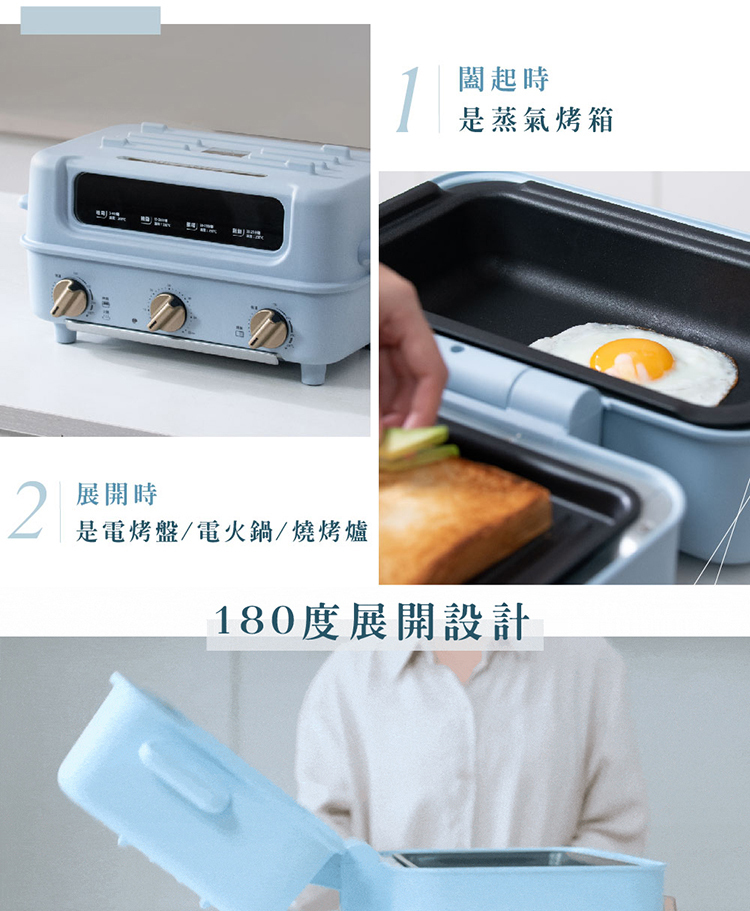 ★ 一機實現:電烤盤 + 電火鍋 + 燒烤爐 + 蒸氣烤箱