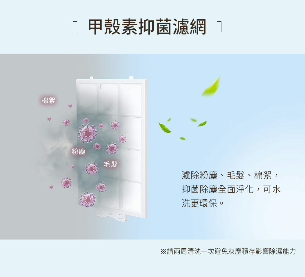 ★ 可水洗甲殼素抑菌濾網,全面淨化