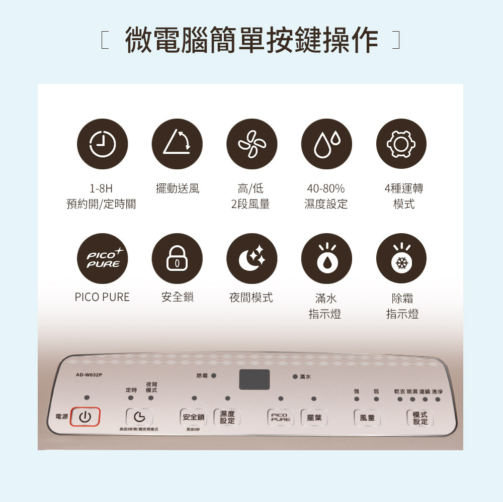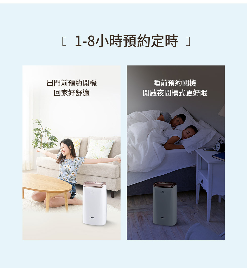 ★ 1~8 小時預約開定時,9 段濕度調整,4 種運轉模式
