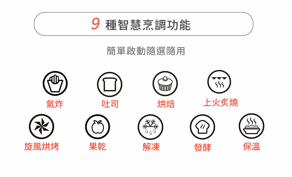 ★ 9 種智慧烹調,簡單啟動隨選隨用