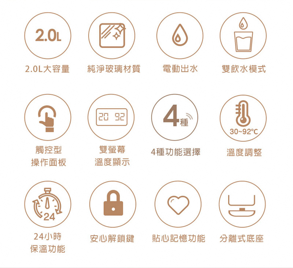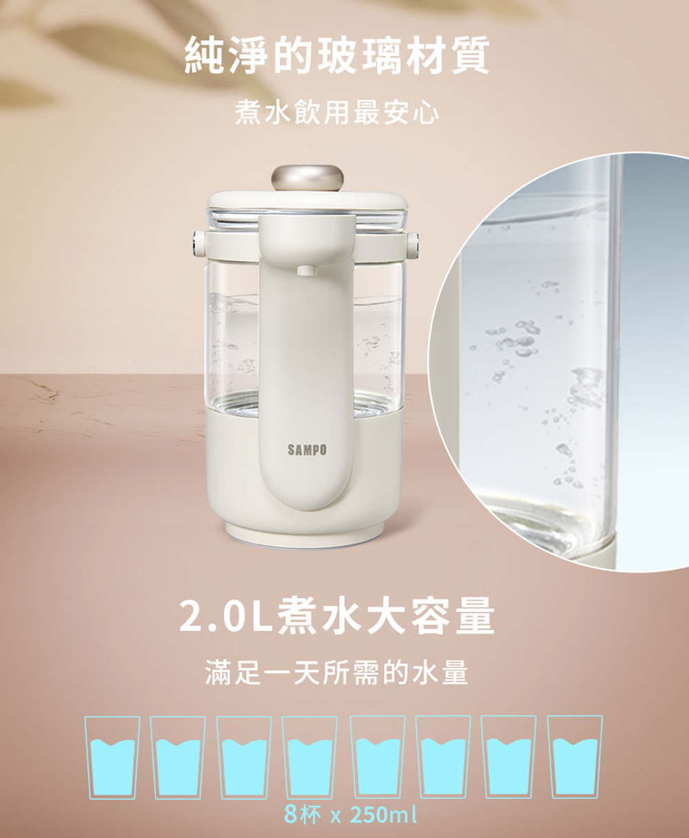 ★ 2.0L 大容量純淨玻璃材質,煮水飲用最安心