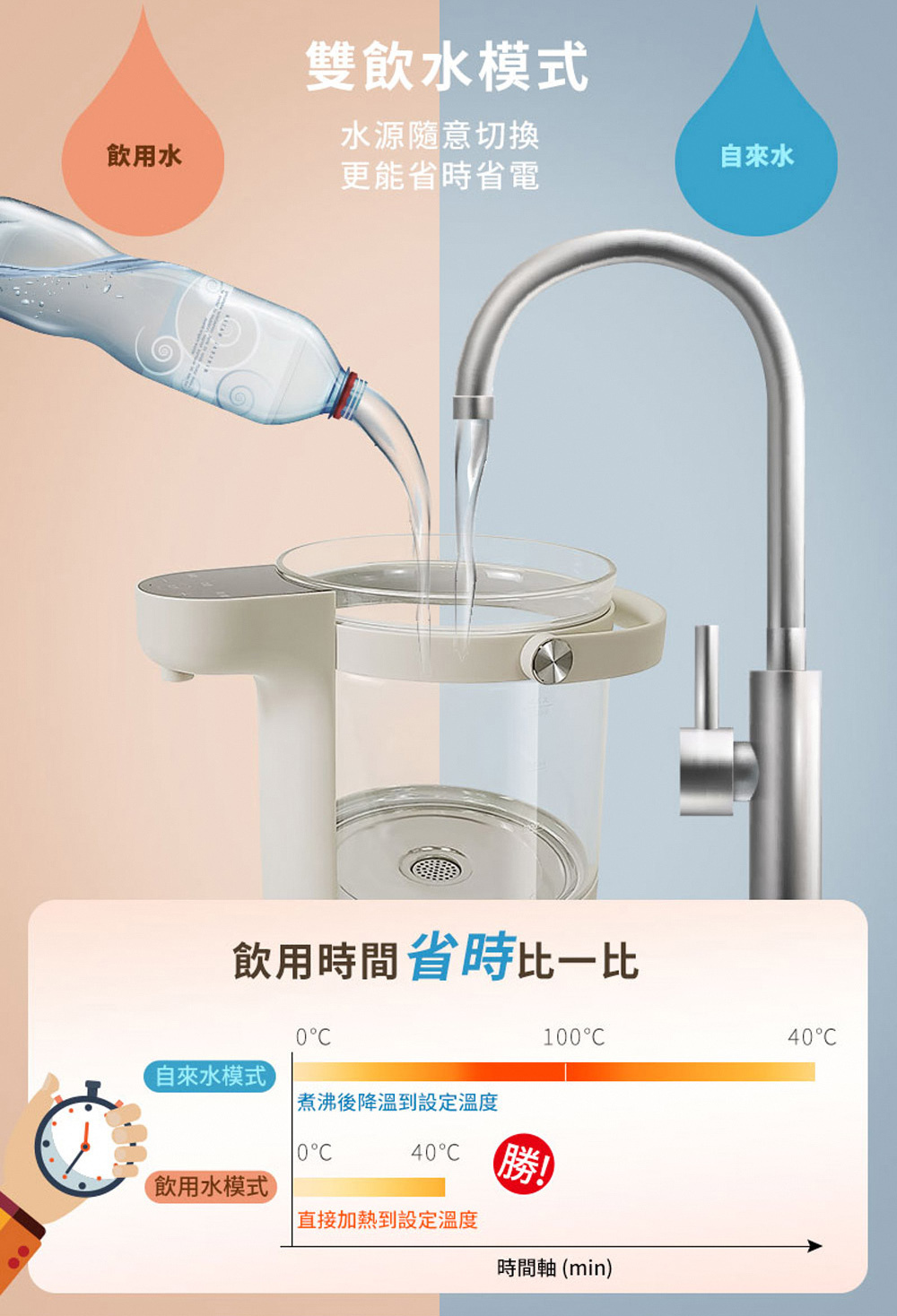 ★ 隨意切換雙飲水模式:飲用水、自來水