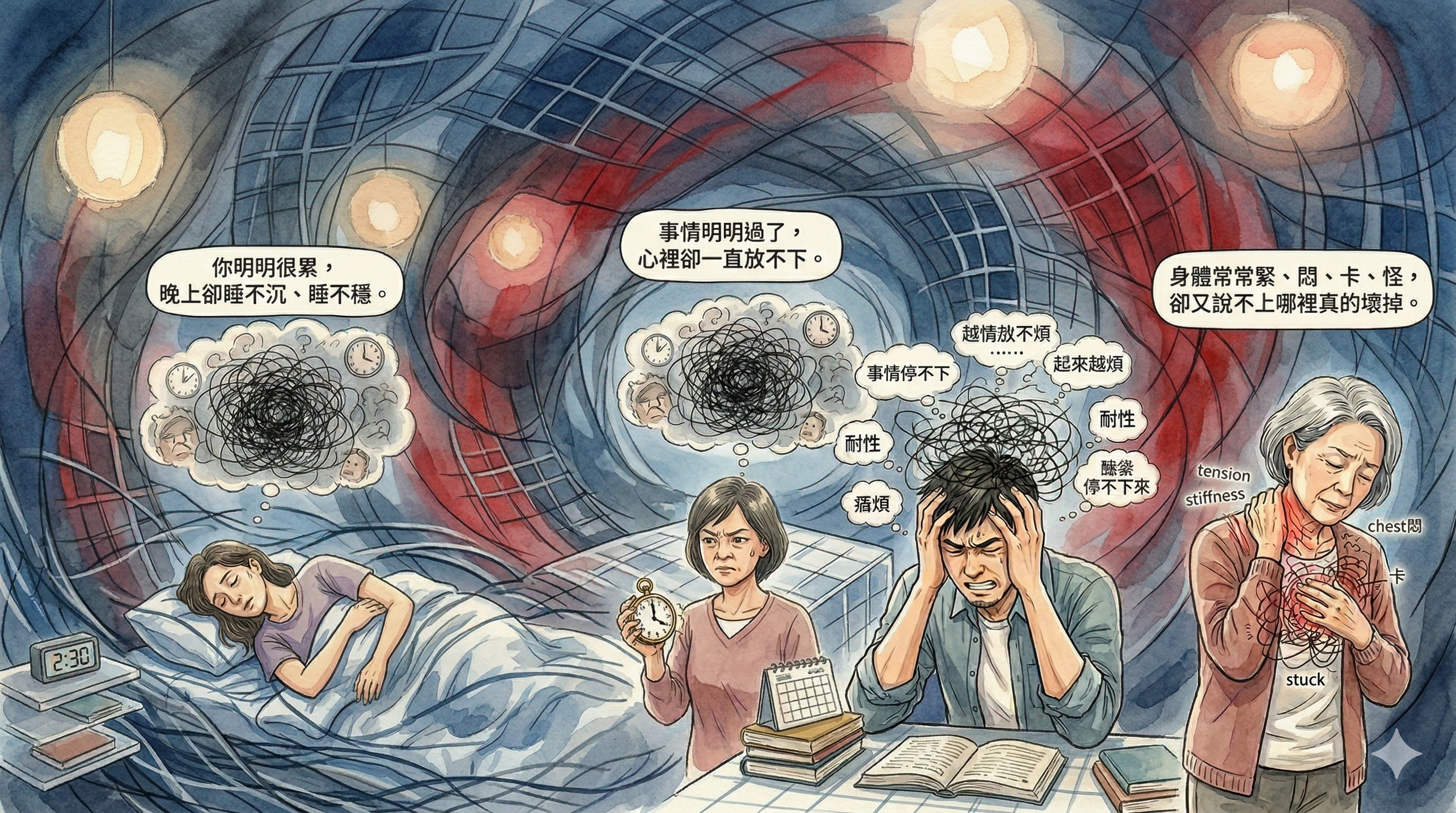 很多人的累、煩、淺眠、早醒、全身卡,其實是同一條線。